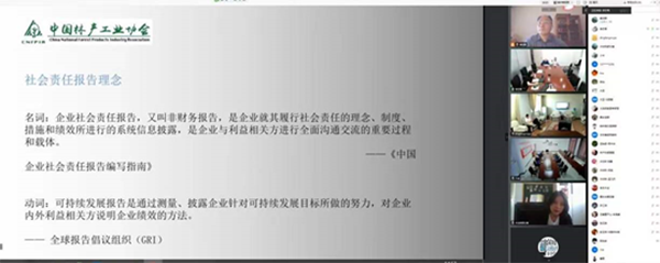 會議播放了《2020年度中國林產(chǎn)工業(yè)企業(yè)社會責(zé)任報告》宣傳片。為保質(zhì)高效完成編制工作,由中國林產(chǎn)工業(yè)協(xié)會副秘書長李東妍做編制說明的報告。從社會責(zé)任報告的理念、現(xiàn)狀、編制意義、編寫流程和注意事項(xiàng)以及下一步工作建議和想法等五個方面進(jìn)行了闡述,并對2021年度社會責(zé)任報告編制的內(nèi)容架構(gòu)、資料收集、重點(diǎn)聚焦事項(xiàng)等作了細(xì)致講解。