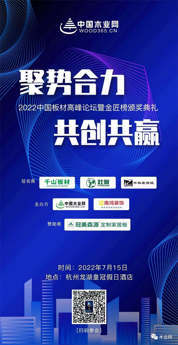 正是“接天蓮葉無窮碧,映日荷花別樣紅”,錢塘江畔,喜報相傳。2022年中國板材高峰論壇暨第八屆金匠榜頒獎典禮于7月15日在杭州盛大起航,帶您聚焦木業(yè)上下游產(chǎn)業(yè)鏈發(fā)展新賽道,與來自政府的相關(guān)領(lǐng)導(dǎo)、協(xié)會領(lǐng)導(dǎo)、行業(yè)內(nèi)的專家、企業(yè)家代表以及媒體朋友共同深入交流。