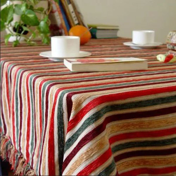 紅色為主的多色條紋桌布,烘托出居室的溫暖感。