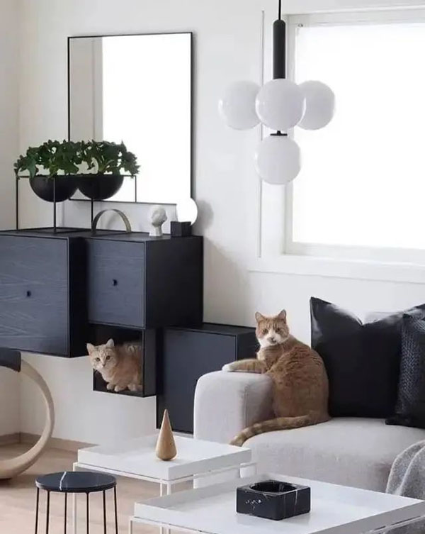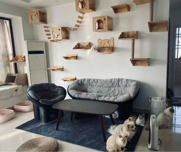 家里有喵星人或者汪星人的話,很容易就會(huì)整個(gè)屋子都成了它們的樂園,大大侵占了人的生活空間,有時(shí)還會(huì)干擾人的正?;顒?dòng)??梢栽诩已b規(guī)劃的時(shí)候,把人的動(dòng)線和寵物的動(dòng)線分開,給人和寵物規(guī)劃各自舒適的活動(dòng)空間。