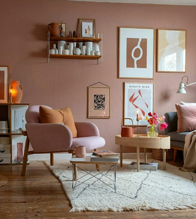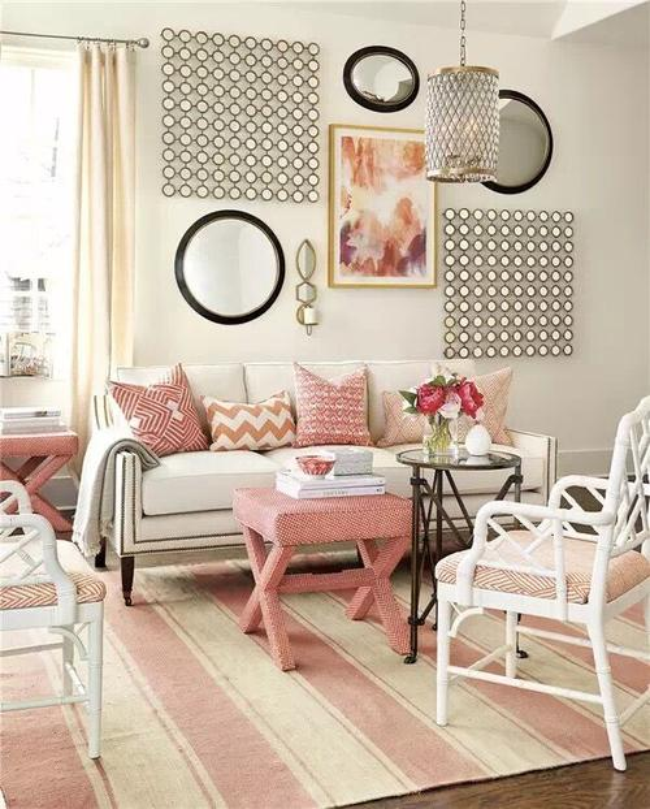 將櫻花粉應(yīng)用于家居裝飾中,就像把春天的甜美溫馨搬進了家中,連空氣中都是甜甜的味道。粉色的臥榻、 小圓凳和抱枕,給人甜甜暖暖的感覺。