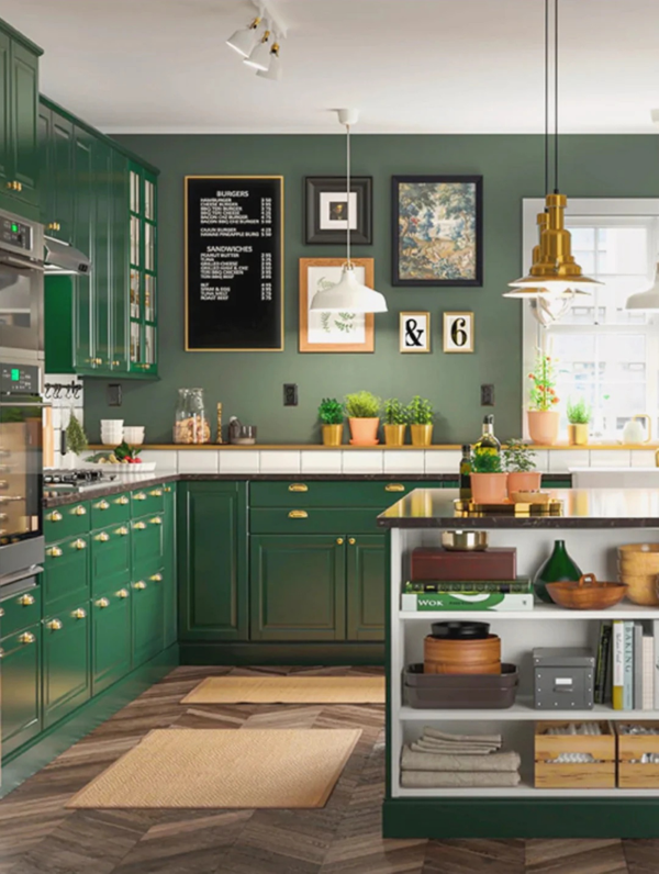 墨綠色不常見(jiàn),但其實(shí)非常適合北歐風(fēng)格,一般需要光線(xiàn)較好的空間,才能有非常好的視覺(jué)效果和質(zhì)感。