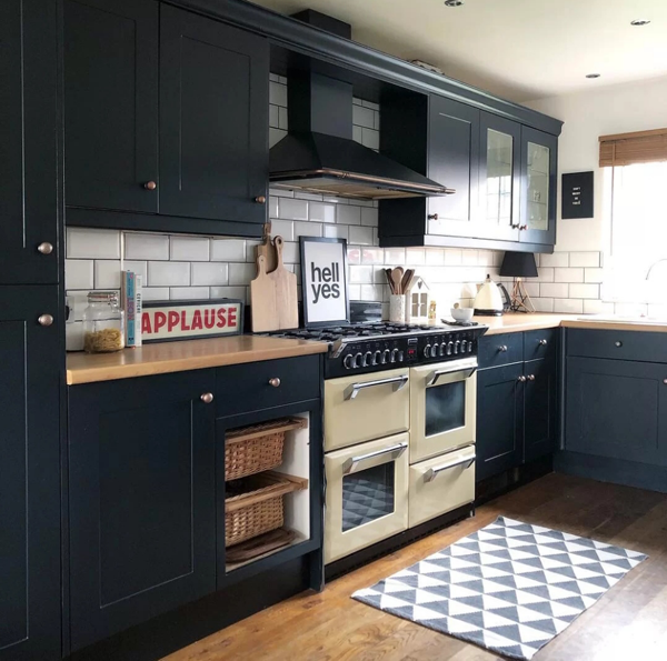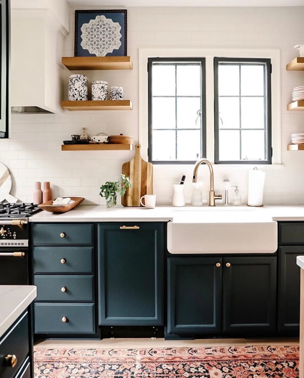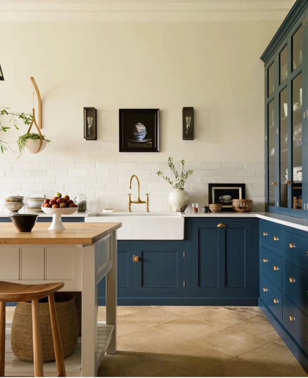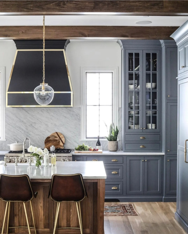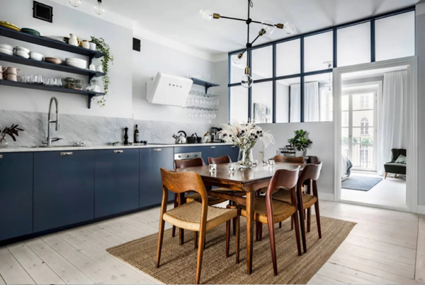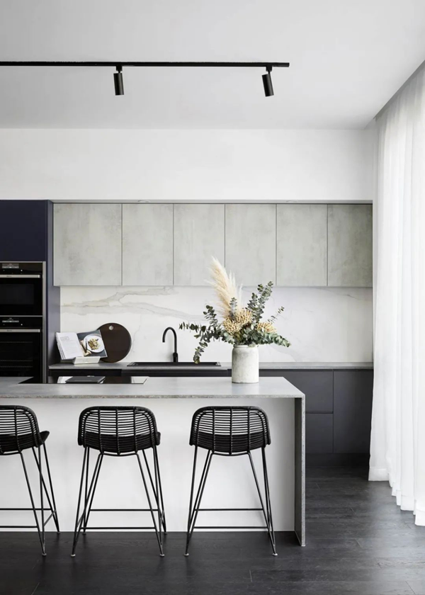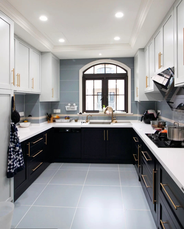 藍(lán)色系沉穩(wěn)而優(yōu)雅,比較適合較大的空間或者開(kāi)放式廚房,門(mén)板造型要簡(jiǎn)約大方,越簡(jiǎn)單越高級(jí)。