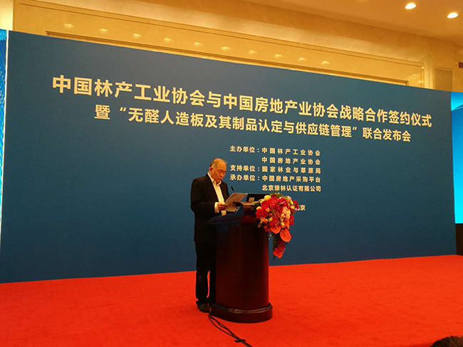 5月17日,由中國林產(chǎn)工業(yè)協(xié)會(huì)與中國房地產(chǎn)業(yè)協(xié)會(huì)聯(lián)合主辦的“中國林產(chǎn)工業(yè)協(xié)會(huì)與中國房地產(chǎn)業(yè)協(xié)會(huì)戰(zhàn)略合作簽約儀式”暨“無醛人造板及其制品認(rèn)定與供應(yīng)鏈管理聯(lián)合發(fā)布會(huì)”在人民大會(huì)堂隆重舉行。