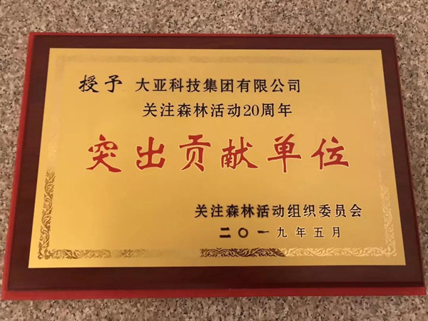 5月27日,“關(guān)注森林活動(dòng)20周年總結(jié)表彰大會(huì)”在京舉行,大亞集團(tuán)以踐行生態(tài)文明和林業(yè)產(chǎn)業(yè)建設(shè)的杰出成就,榮獲國(guó)家“關(guān)注森林活動(dòng)20周年突出貢獻(xiàn)單位”。集團(tuán)董事局主席、總裁陳曉龍應(yīng)邀赴京出席表彰大會(huì),全國(guó)政協(xié)主席汪洋等黨和國(guó)家領(lǐng)導(dǎo)人接見(jiàn)參會(huì)代表并頒獎(jiǎng)。