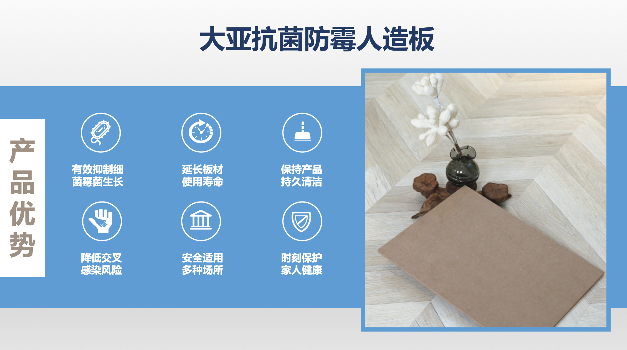 大亞人造板的抗菌防霉人造板能有效抑制霉菌的滋生,減少細(xì)菌對(duì)家具和人體的傷害,健康環(huán)保、舒適美觀。