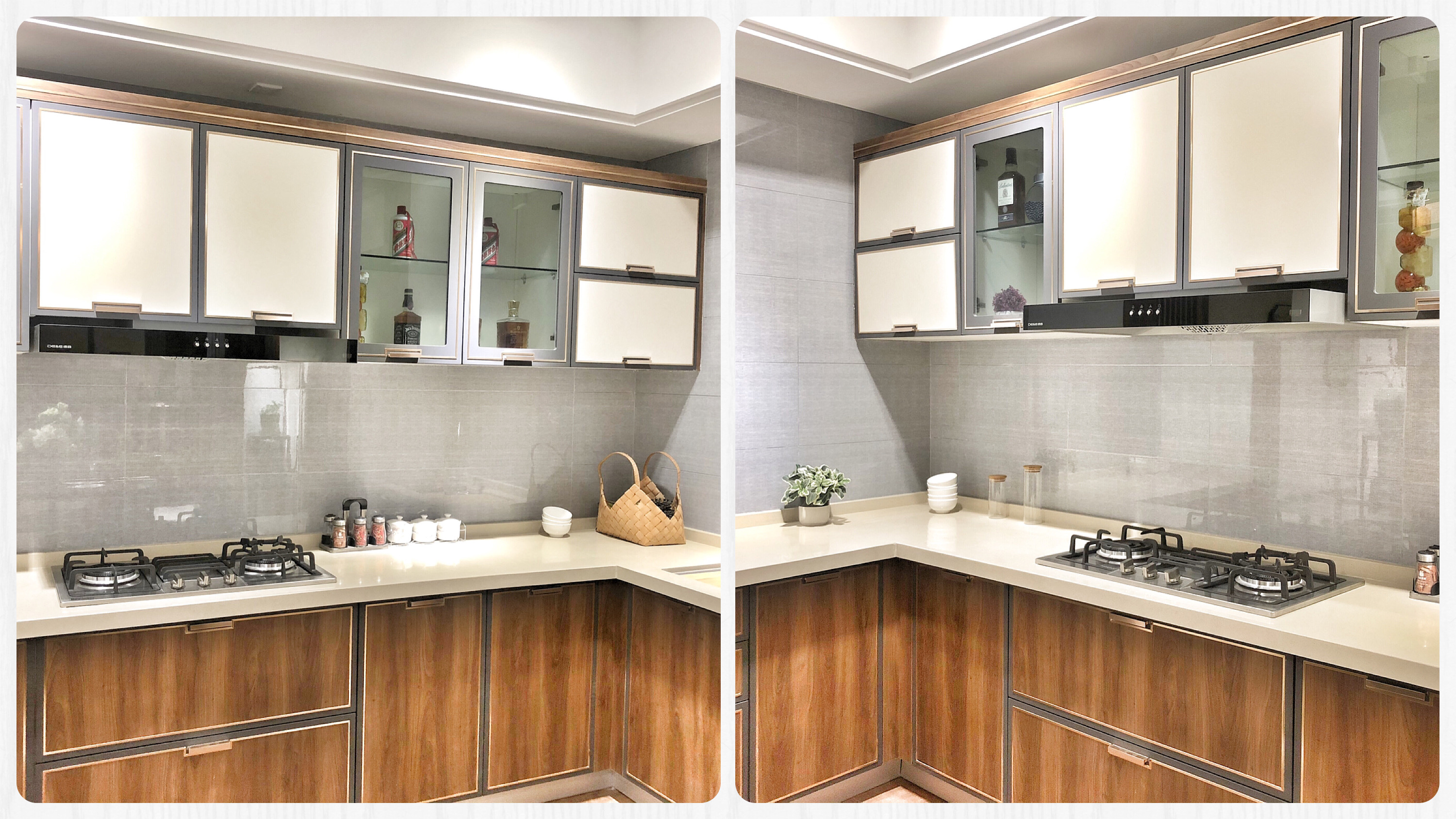 廚房的以“淺胡桃木色+白色”為主色調(diào),利用空白空間將色彩隔斷,風格簡潔。大面積的柜子也充分利用了廚房的收納功能。