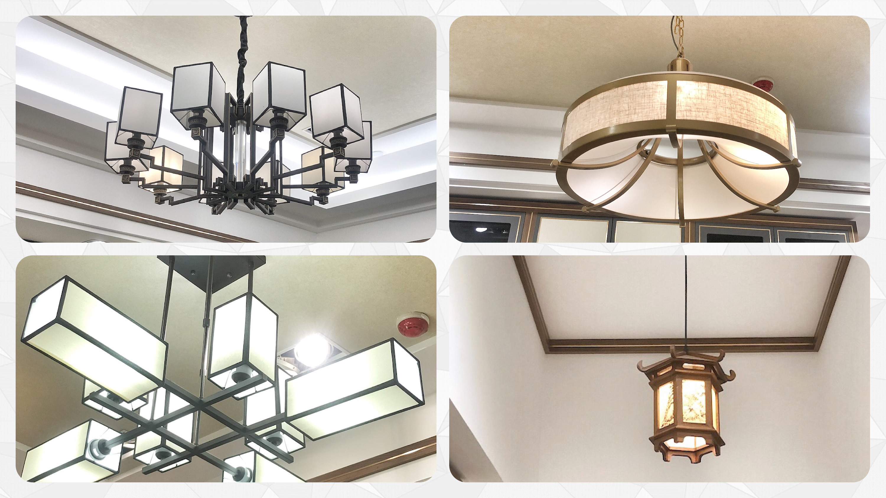 新中式風格的體現(xiàn)不僅在家具整體的色調(diào)上,更體現(xiàn)在細節(jié)處。新中式風格的燈具頗具特點,吊燈采用中國傳統(tǒng)的方正、圓形及六面形元素設(shè)計,通過簡約的線條展示東方之美。