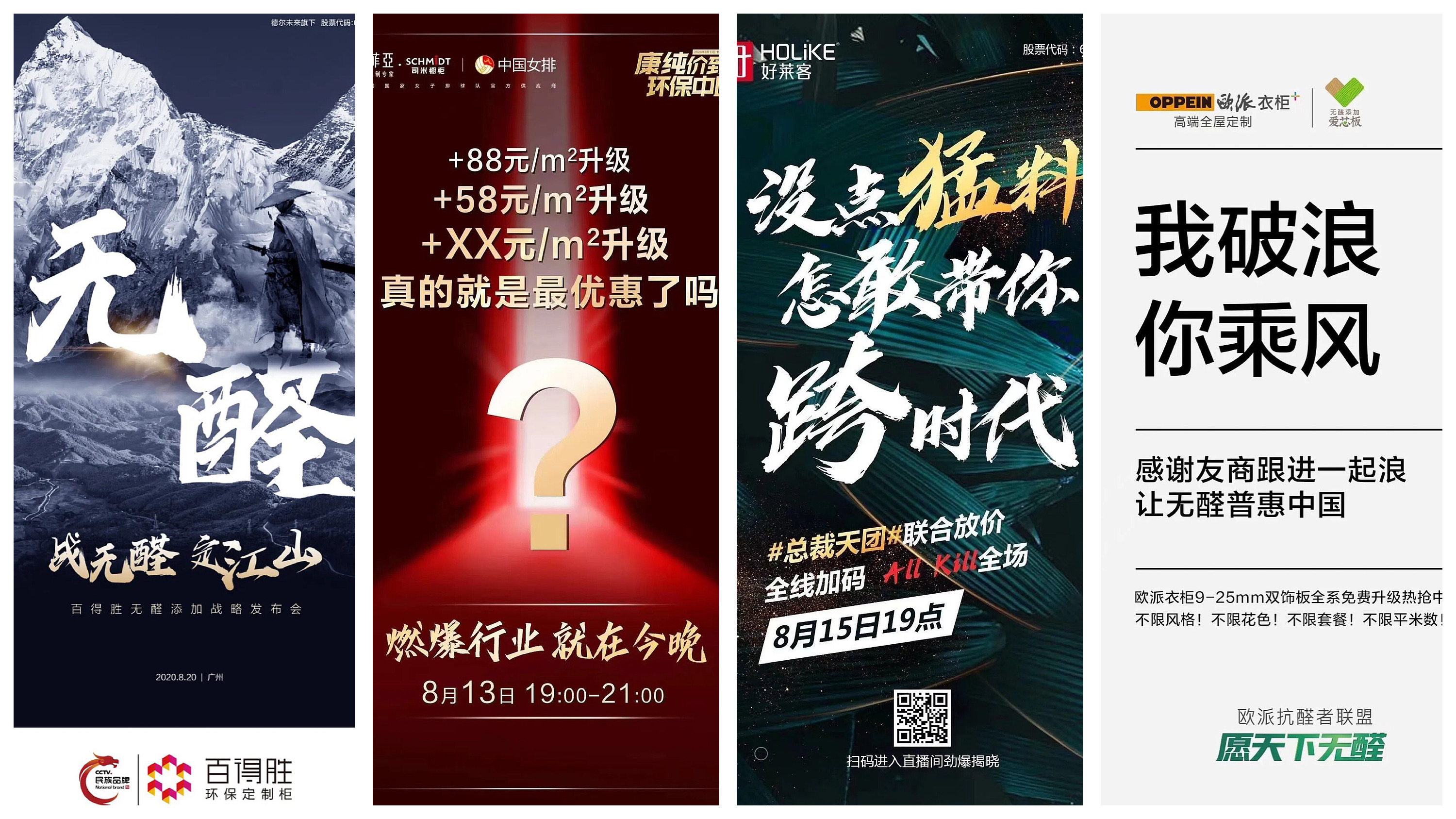 8月,索菲亞、百得勝、歐派和好萊客不約而同地開(kāi)啟了“環(huán)保+價(jià)格”大戰(zhàn),將無(wú)醛添加視為產(chǎn)品的核心賣(mài)點(diǎn)之一,有些品牌甚至將無(wú)醛上升到了產(chǎn)品戰(zhàn)略的高度。