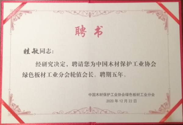 此后,還舉行了木材保護工業(yè)協(xié)會綠色板材工業(yè)分會成立揭牌儀式,大亞人造板集團眭敏董事長被聘為中國木材保護工業(yè)協(xié)會綠色板材工業(yè)分會輪值會長。大亞人造板將會帶著這份榮譽,發(fā)揮品牌的行業(yè)引領作用,堅持綠色產業(yè)鏈戰(zhàn)略和自主創(chuàng)新,推動行業(yè)高質量發(fā)展。