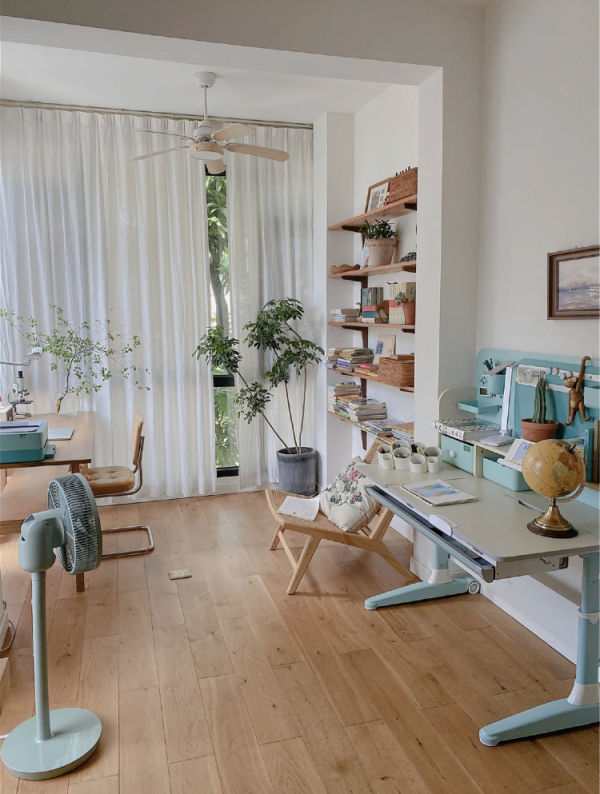 另外,很多人也沒忘記家里的小朋友,在客廳或者兒童房里規(guī)劃了單獨的學(xué)習(xí)或閱讀小天地,不僅方便上網(wǎng)課,還能從小培養(yǎng)小朋友的閱讀興趣。