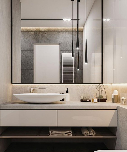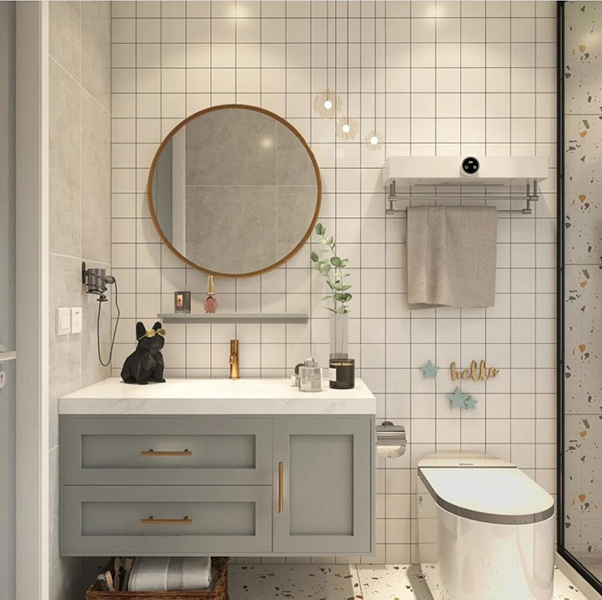 衛(wèi)生間在設計時,洗漱臺下的儲物柜通常使用木質板材打造。若使用實木,實木不防水、怕潮,經(jīng)常遇水容易腐蝕變形。若使用普通板材,由于其防潮性能較差,也容易出現(xiàn)開裂變形等問題。因此,對于衛(wèi)生間內儲物柜的基材選擇,推薦使用防潮板。