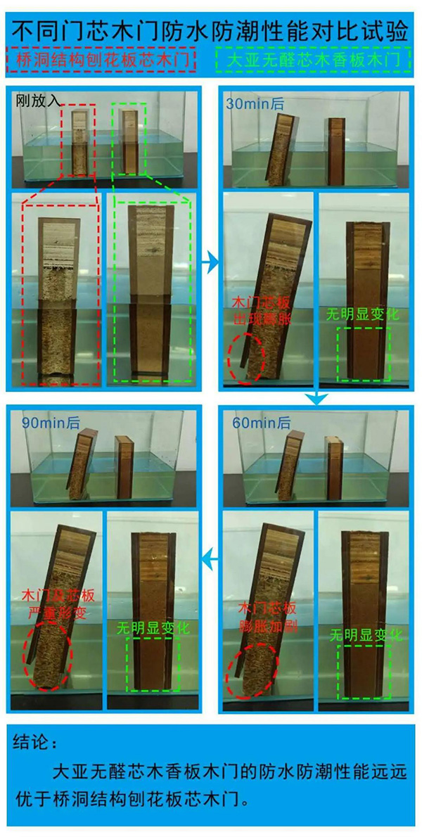 大亞無醛芯木香板木門防水防潮性能優(yōu)異,能夠大大地延長木門的使用壽命,其具有幾下特點: