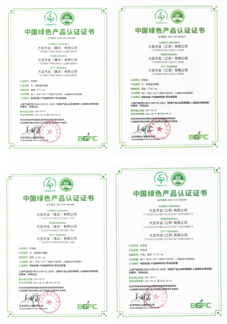 作為家居板材供應(yīng)商,一直以來(lái),大亞人造板將提供“優(yōu)質(zhì)、環(huán)保、健康”的板材作為對(duì)客戶和消費(fèi)者的承諾,在全國(guó)推廣家居環(huán)保概念,率先推出E0級(jí)環(huán)保標(biāo)準(zhǔn),旗下各工廠皆已通過(guò)ISO9001:2000質(zhì)量體系認(rèn)證和ISO14001環(huán)境管理體系認(rèn)證,產(chǎn)品通過(guò)中國(guó)環(huán)境標(biāo)志產(chǎn)品認(rèn)證(十環(huán)認(rèn)證)、FSC-COC認(rèn)證、日本JIS標(biāo)準(zhǔn)F☆☆☆☆認(rèn)證、美國(guó)加州CARB認(rèn)證,美國(guó)EPA認(rèn)證。 此次“中國(guó)綠色產(chǎn)品認(rèn)證”的獲得,是對(duì)大亞人造板產(chǎn)品在環(huán)保方面的再一次肯定!