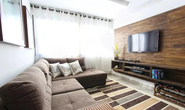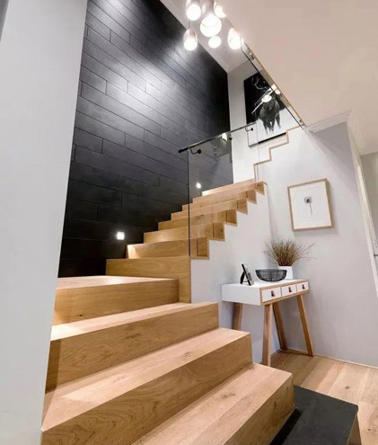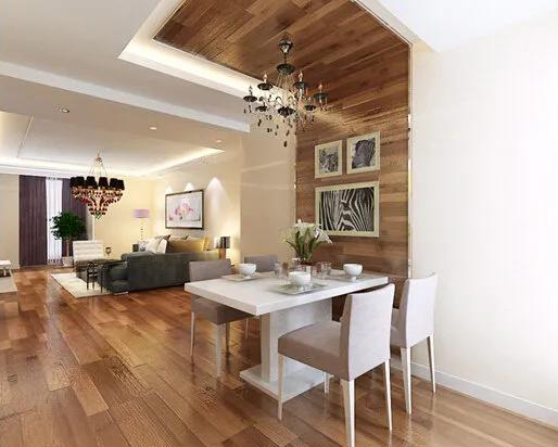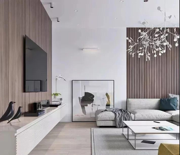 木地板上墻,顧名思義,就是將原本鋪在地面的木地板鋪在墻上,電視背景墻、床頭背景墻、餐廳飾面墻等都可以如此設計。
