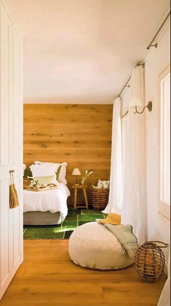 木材可以吸收陽光中的紫外線,反射紅外線,健康環(huán)保舒適。相比與其他墻面材質,木地板還具有良好的吸音效果,尤其適合用在臥室,或者鬧市區(qū)的大宅,營造出一方世外桃源。