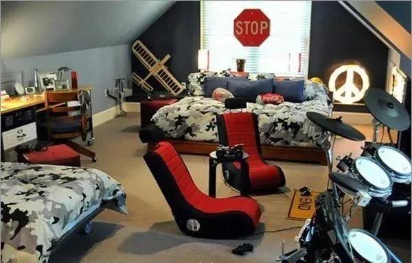 在室內(nèi)燈光的布置上,燈光的輪廓將使內(nèi)飾更加有趣。使用隱藏的LED燈條,花彩,落地燈,壁燈,LED RGB(可選擇的燈光顏色),調(diào)光開關(guān)等。青少年將有機會通過先進的照明選項來控制房間的氛圍。