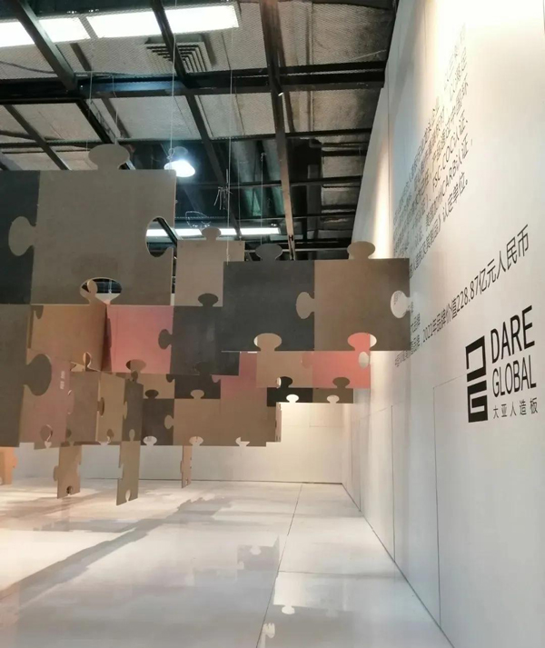 走進(jìn)來(lái),原木色、紅色、黑色三色搭配的拼圖板極具視覺(jué)美感,觀眾近距離接觸就能感受到,大亞纖維板板質(zhì)細(xì)密,板面堅(jiān)硬平滑,內(nèi)部結(jié)構(gòu)均勻,物理力學(xué)性能優(yōu)良。原木色是大亞E0級(jí)高光基材,生產(chǎn)時(shí)添加了大比例的松木,纖維細(xì)膩、平整度、光潔度好;紅色是阻燃纖維板,最高阻燃級(jí)別能達(dá)到B1級(jí);黑色是高防潮地板基材,采用國(guó)際領(lǐng)先專利配方,24小時(shí)吸水膨脹率小于3%,技術(shù)水平處于行業(yè)領(lǐng)先位置。