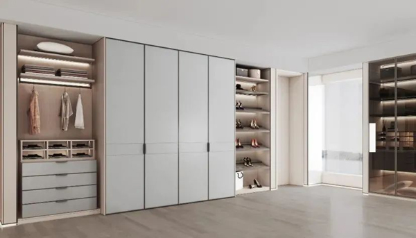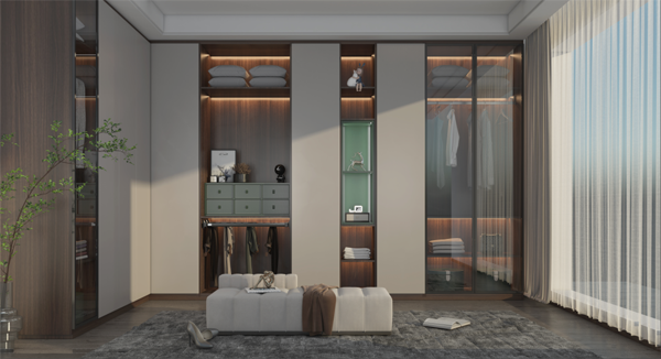 但大部分衣帽間都設(shè)計在暗室,除了燈光的設(shè)計和使用之外,衣物容易出現(xiàn)蟲蛀、潮濕天氣發(fā)霉等狀況,建議選擇能起到防霉抗菌作用的板材,從而保護(hù)珍貴的衣物。