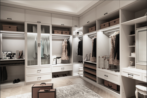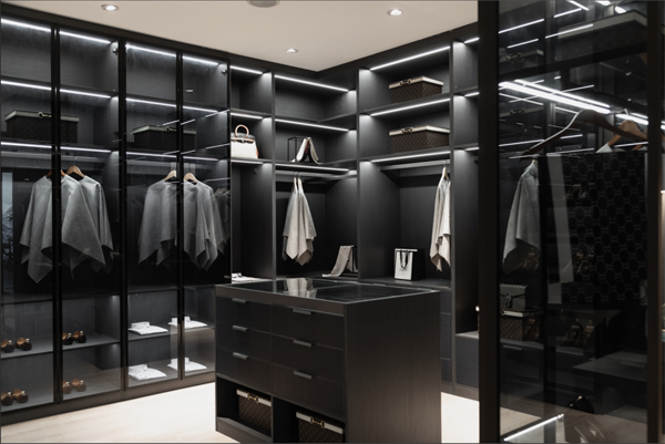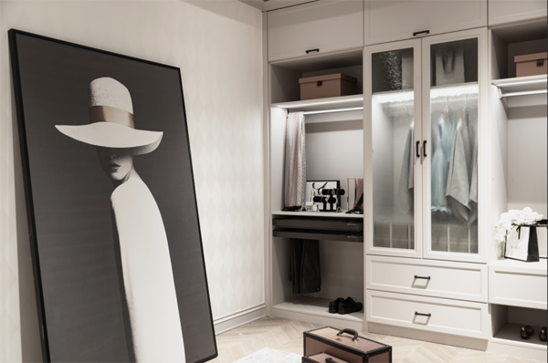 襯板:將眼鏡、手表、手套、首飾盒等物品放在帶滑軌的推拉襯板中,搭配時一目了然,清晰方便。