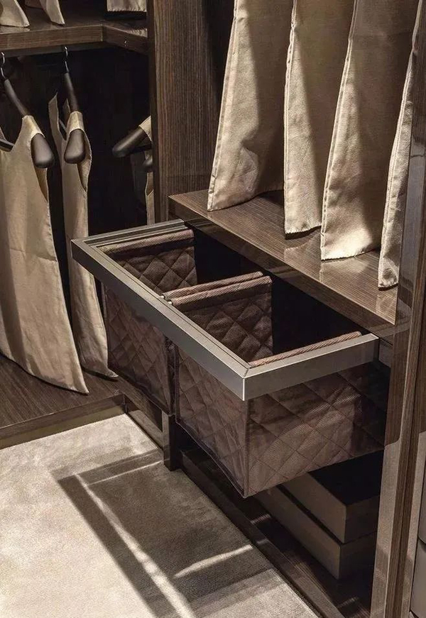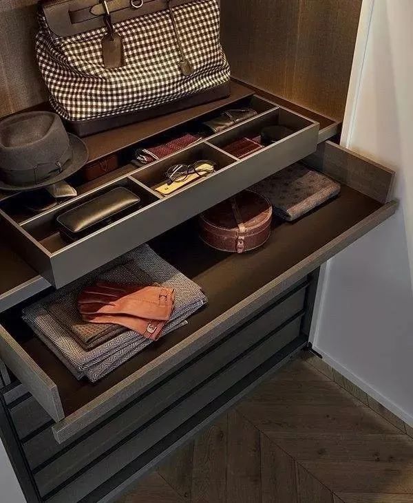 普通抽屜:可以在設(shè)計衣櫥的時候就設(shè)計一些抽屜,放置裁剪特殊的衣服,例如斜裁布上衣、比較重的手工綴珠服飾、針織毛衣等。