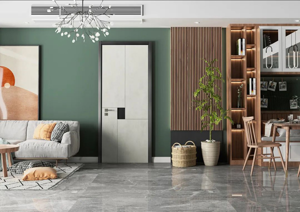 客廳門大多采用對(duì)扇型、推拉型或折疊式門型,而其樣式為方格式分割的全玻璃門型,這種門型以占空間面積小而方便,具有簡潔、明快、透明光亮等特點(diǎn),感觀上會(huì)把室內(nèi)空間拉大。