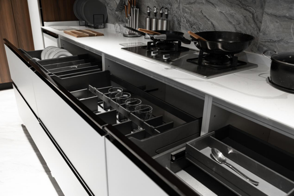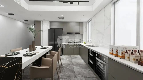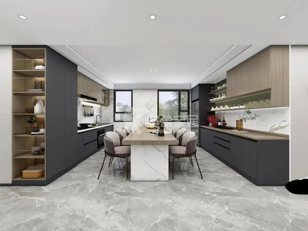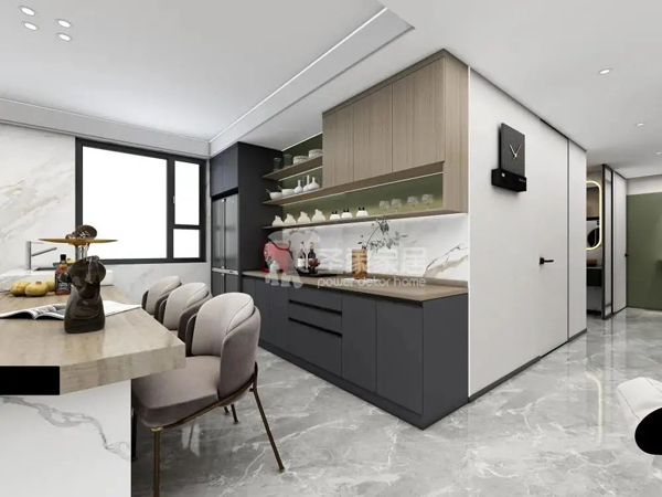 需要提醒大家的是,廚房明火區(qū)是家中最容易發(fā)生火災的區(qū)域,一定要使用阻燃板做櫥柜,降低火災風險。