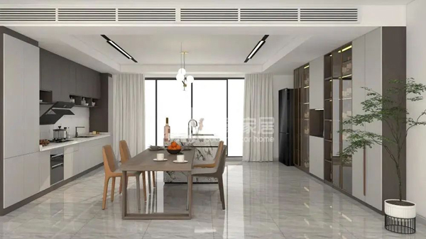 把兩個本來相對獨立的空間——廚房和客廳連接起來,使得兩個空間的裝修風格相融合,進而整個家的裝修風格可以統(tǒng)一、協(xié)調(diào)。因為少了隔斷,客廳內(nèi)的亮度變大了,更通透,陽光更充足。