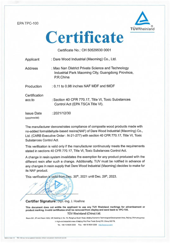 大亞人造板通過ISO14001環(huán)境管理體系認(rèn)證、ISO9001質(zhì)量管理體系認(rèn)證、ISO14001環(huán)境管理體系認(rèn)證、日本JIS F☆☆☆☆、美國環(huán)??偸餎PA認(rèn)證、美國CARB認(rèn)證等國內(nèi)外多項(xiàng)資格認(rèn)證,板材健康環(huán)保,質(zhì)量有保證。