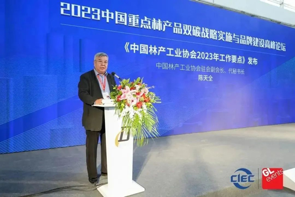 論壇上,由中國林產(chǎn)工業(yè)協(xié)會駐會副會長、代秘書長陳天全向社會正式發(fā)布《中國林產(chǎn)工業(yè)協(xié)會2023年工作要點(diǎn)》,中國林產(chǎn)工業(yè)協(xié)會秘書處張秋嶺主任正式宣布首批林產(chǎn)工業(yè)行業(yè)雙碳戰(zhàn)略試點(diǎn)示范企業(yè)名單及公布首批中國重點(diǎn)林產(chǎn)品“匠心品牌”企業(yè)并授予證書。同時,中國質(zhì)量萬里行促進(jìn)會會長、原國家質(zhì)檢總局總工程師劉兆斌對《深刻領(lǐng)會中央質(zhì)量強(qiáng)國發(fā)展戰(zhàn)略意義,著力推進(jìn)民族品牌建設(shè)》做了專題報告。