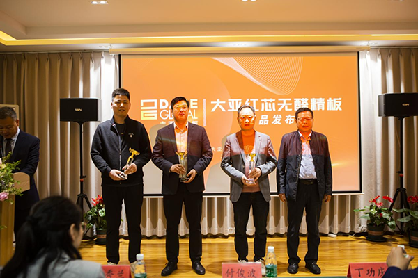 ??4月28日,大亞紅芯無醛精板新品發(fā)布會在大亞木業(yè)(江蘇)有限公司(即大亞人造板集團宿遷生產基地)順利舉辦。大亞人造板集團財務總經理付俊波先生、研發(fā)中心總經理陳秀蘭女士、運營中心總經理丁功慶先生、人造板集團相關部門同仁及全國各地百名經銷商代表蒞臨發(fā)布會現(xiàn)場。