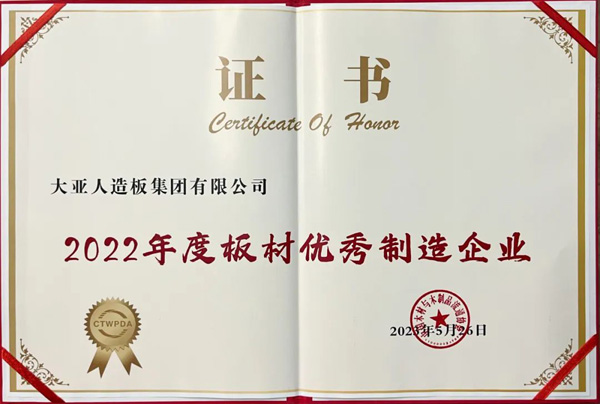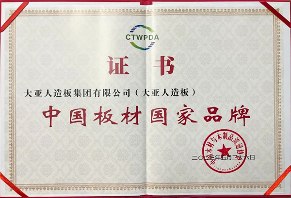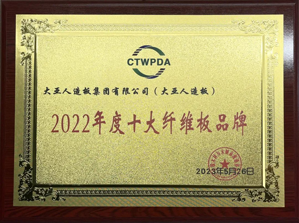 會議同期,中國木材與木制品流通協(xié)會對2022年木業(yè)優(yōu)秀企業(yè)進行了表彰,大亞人造板榮獲中國板材國家品牌、中國板材民族品牌、2022年度十大刨花板品牌、2022年度十大纖維板品牌、2022年度板材優(yōu)秀制造企業(yè)等五項殊榮!