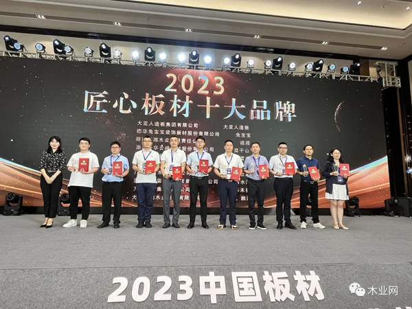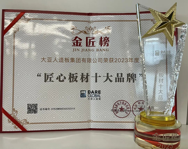 中國板材“金匠榜”頒獎典禮上,大亞人造板連續(xù)第三年蟬聯(lián)“匠心板材十大品牌”!