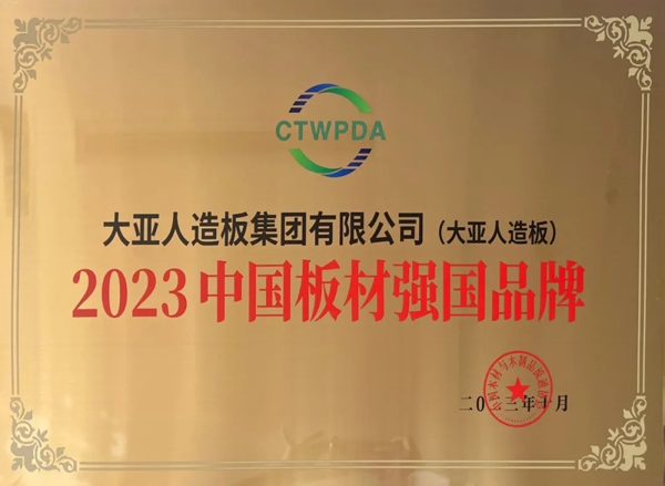 大會(huì)隆重發(fā)布了“中國(guó)家居行業(yè)2023年強(qiáng)國(guó)品牌榮譽(yù)榜單”。大亞人造板榮獲“2023中國(guó)板材強(qiáng)國(guó)品牌”!