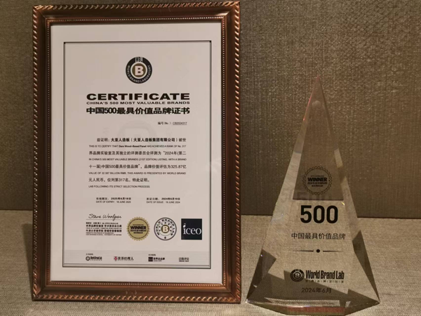 21屆世界品牌大會(huì)于6月19日在北京舉行。主辦方世界品牌實(shí)驗(yàn)室(World Brand Lab)發(fā)布了2024年《中國(guó)500最具價(jià)值品牌》分析報(bào)告。在這份基于財(cái)務(wù)數(shù)據(jù)、品牌強(qiáng)度和消費(fèi)者行為分析的年度報(bào)告中,大亞人造板以325.87億元品牌價(jià)值蟬聯(lián)中國(guó)500最具價(jià)值品牌排行榜,價(jià)值增幅6.6%!品牌排名317位,第七次榮登最具價(jià)值品牌(人造板行業(yè))榜首。
