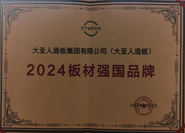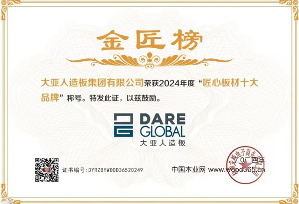 2024年7月,中國木材與木制品流通協(xié)會主辦的“綠色家居板材新質(zhì)生產(chǎn)力大會暨板材品牌企業(yè)“來賓行”招商對接活動”,和中國木業(yè)網(wǎng)主辦的“ “共建新生態(tài) 同筑新未來” 2024板材產(chǎn)業(yè)峰會暨金匠榜頒獎典禮“分別于年7月15日、7月20日,在廣西來賓和浙江杭州隆重舉行, “大亞人造板”榮獲“2024板材強國品牌”和“匠心板材十大品牌”殊榮。