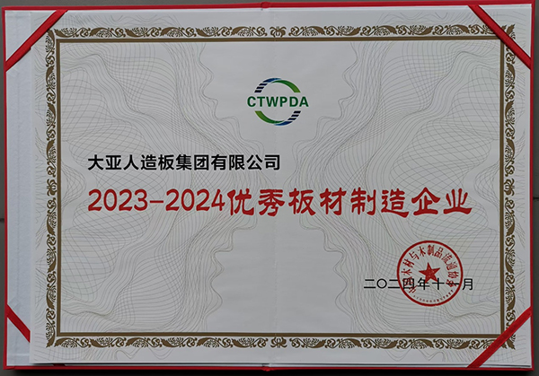 會(huì)議最后是頒獎(jiǎng)環(huán)節(jié),大亞人造板集團(tuán)有限公司被評(píng)為“2023-2024板材優(yōu)秀制造企業(yè)”,大亞人造板榮獲“中國板材國家品牌”、 “2023-2024十大纖維板品牌”和“2023-2024十大刨花板品牌”等獎(jiǎng)項(xiàng)。