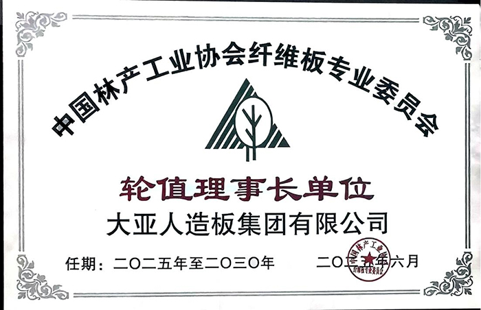 2025年6月26日“中國(guó)林產(chǎn)工業(yè)協(xié)會(huì)纖維板專(zhuān)業(yè)委員會(huì)第七屆會(huì)員代表大會(huì)”在山東濟(jì)寧盛大召開(kāi),會(huì)議審議通過(guò)《中國(guó)林產(chǎn)工業(yè)協(xié)會(huì)纖維板專(zhuān)業(yè)委員會(huì)第六屆理事會(huì)工作報(bào)告》和《中國(guó)林產(chǎn)工業(yè)協(xié)會(huì)纖維板專(zhuān)業(yè)委員會(huì)管理辦法》,會(huì)議選舉并產(chǎn)生了“中國(guó)林產(chǎn)工業(yè)協(xié)會(huì)纖維板專(zhuān)業(yè)委員會(huì)第七屆理事會(huì)”,大亞人造板集團(tuán)有限公司當(dāng)選第七屆輪值理事長(zhǎng)成員單位,丁功慶先生當(dāng)選第七屆輪值理事長(zhǎng)。