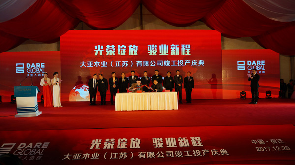 慶典儀式中還舉行了集體簽約會,大亞木業(yè)(江蘇)有限公司與客戶簽訂了2018年銷售合同,現(xiàn)場簽約的銷售量已超生產(chǎn)線年生產(chǎn)量的半數(shù)。