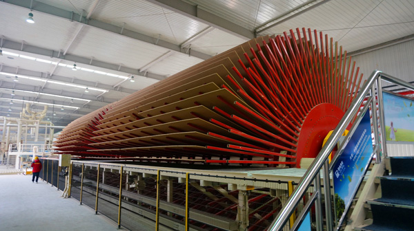宿遷項目的生產(chǎn)線項目全套引進德國Pallmann PHT 600X1250鼓式削片機,可通過更大直徑600mm原木;采用多臺螺旋通過定制的控制軟件,對不同品種的木片原料進行科學(xué)精確配比使得原料利用經(jīng)濟、科學(xué);引進德國Pallmann環(huán)式刨片機八臺,同時匹配Pallmann自動磨刀機,確保刨花形態(tài)始終更優(yōu);全套引進德國Buttner公司的干燥煙氣預(yù)除塵系統(tǒng),確保干燥的煙氣的煙塵含量更低,同時有效保證干燥過程更安全;全套引進意大利CMC公司的表層刨花分選系統(tǒng),確保產(chǎn)品表面質(zhì)量更優(yōu);全套引進德國Siempelkamp公司調(diào)拌膠系統(tǒng),精確控制膠水、蠟、防水劑等組分添加,精確控制單位產(chǎn)品施膠量,確保產(chǎn)品質(zhì)量;全套引進德國Siempelkamp公司無醛膠施加系統(tǒng),可滿足無醛板的批量生產(chǎn);全套引進意大利CMC公司表層氣流鋪裝機,有效保證產(chǎn)品的表面質(zhì)量更優(yōu);全套引進德國Siempelkamp公司八呎連續(xù)式平壓機,有效熱壓長度42.1米,屬亞洲更大;全套引進瑞士史丹利蒙Steinemann公司四砂架八砂頭雙面寬幅砂光機兩臺和SHS公司素板倉儲系統(tǒng),具有產(chǎn)能高、厚度控制精確、砂光表面質(zhì)量更佳等優(yōu)點;生產(chǎn)所需E0級、F☆☆☆☆級或更高等級膠黏劑以及功能膠黏劑,采用有大亞自主知識產(chǎn)權(quán)的配方由項目配套的專業(yè)工廠制造(而不是一般的車間),制造過程無污水排放、符合環(huán)保要求,無醛膠黏劑直接采購歐洲知名品牌產(chǎn)品;新增引進國際更的干燥煙氣綜合處理系統(tǒng),能充分降低尾氣顆粒物、有效確保達標排放,清潔生產(chǎn)、安全生產(chǎn)。