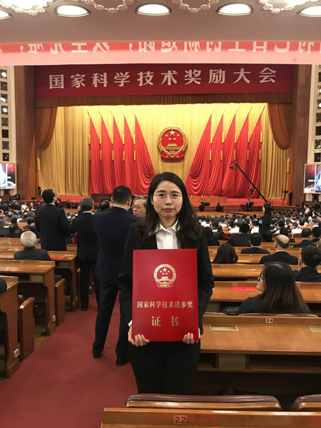 大亞人造板集團(tuán)研發(fā)中心副總經(jīng)理陳秀蘭現(xiàn)場(chǎng)領(lǐng)取證書