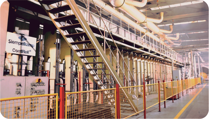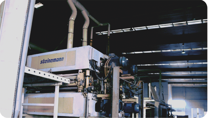 熱壓機是密度板生產(chǎn)工藝過程中的心臟,它將施過膠的纖維板坯壓成纖維板,是每一條生產(chǎn)線設(shè)備的核心組成部分,丹陽生產(chǎn)基地選擇的是辛北爾普康新的contiRoll技術(shù)連續(xù)壓機。壓機的速度為1200MM/S,可生產(chǎn)厚度2-40mm的中/高密度纖維板。該機配有柔性熱壓進料系統(tǒng),即使是難以加工的樹木,如白楊、桉樹,這種速度也可以保證。新研發(fā)的進料加熱系統(tǒng)進一步地提高了熱壓機的性能。帶有料位裝置的星型板坯鋪裝機,優(yōu)化了纖維的分布,通過機械板坯梳平輥裝置,精確地控制了板坯的成型,就可以生產(chǎn)從輕量到高密度的各種板種。 | |