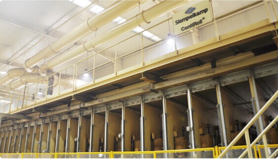 | 熱壓機(jī)是密度板生產(chǎn)工藝過程中的心臟,它將施過膠的纖維板坯壓成纖維板,是每一條生產(chǎn)線設(shè)備的核心組成部分,茂名生產(chǎn)基地選擇的是辛北爾普康更新的contiRoll技術(shù)連續(xù)壓機(jī)。壓機(jī)的速度為1200MM/S,可生產(chǎn)厚度2-40mm的中/高密度纖維板。該機(jī)配有柔性熱壓進(jìn)料系統(tǒng),即使是難以加工的樹木,如白楊、桉樹,這種速度也可以保證。更新研發(fā)的進(jìn)料加熱系統(tǒng)進(jìn)一步地提高了熱壓機(jī)的性能。帶有料位裝置的星型板坯鋪裝機(jī),優(yōu)化了纖維的分布,通過機(jī)械板坯梳平輥裝置,精確地控制了板坯的成型,就可以生產(chǎn)從輕量到高密度的各種板種。 |